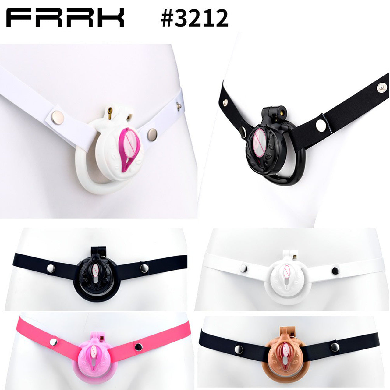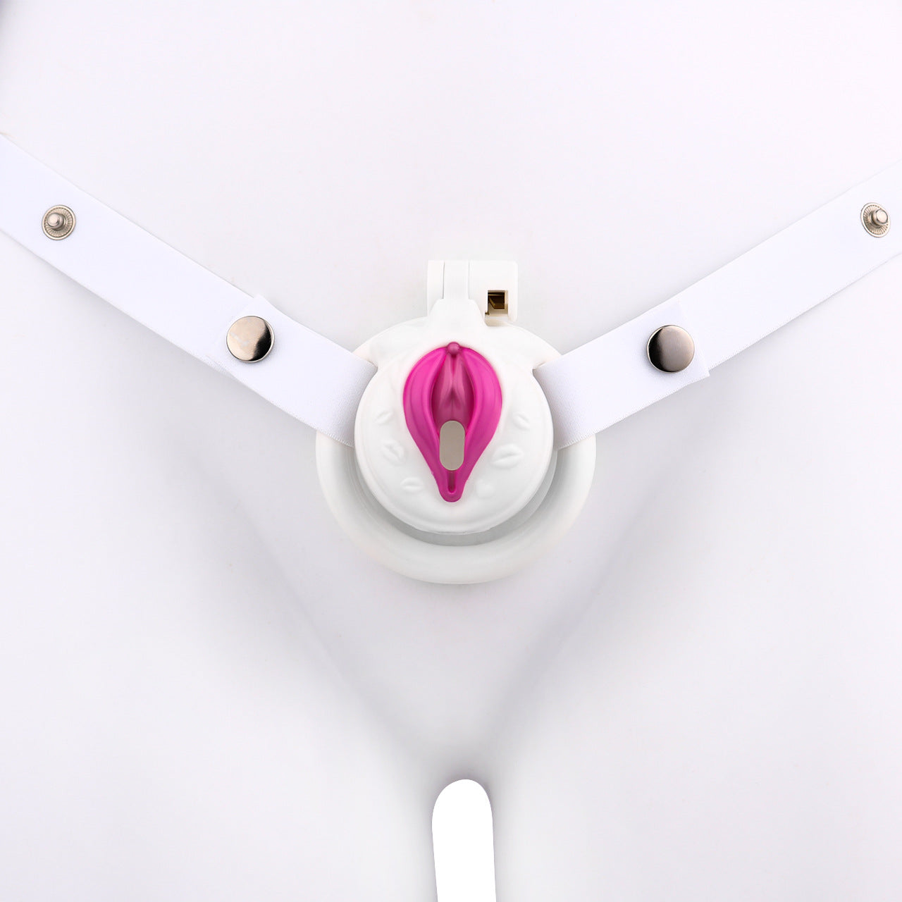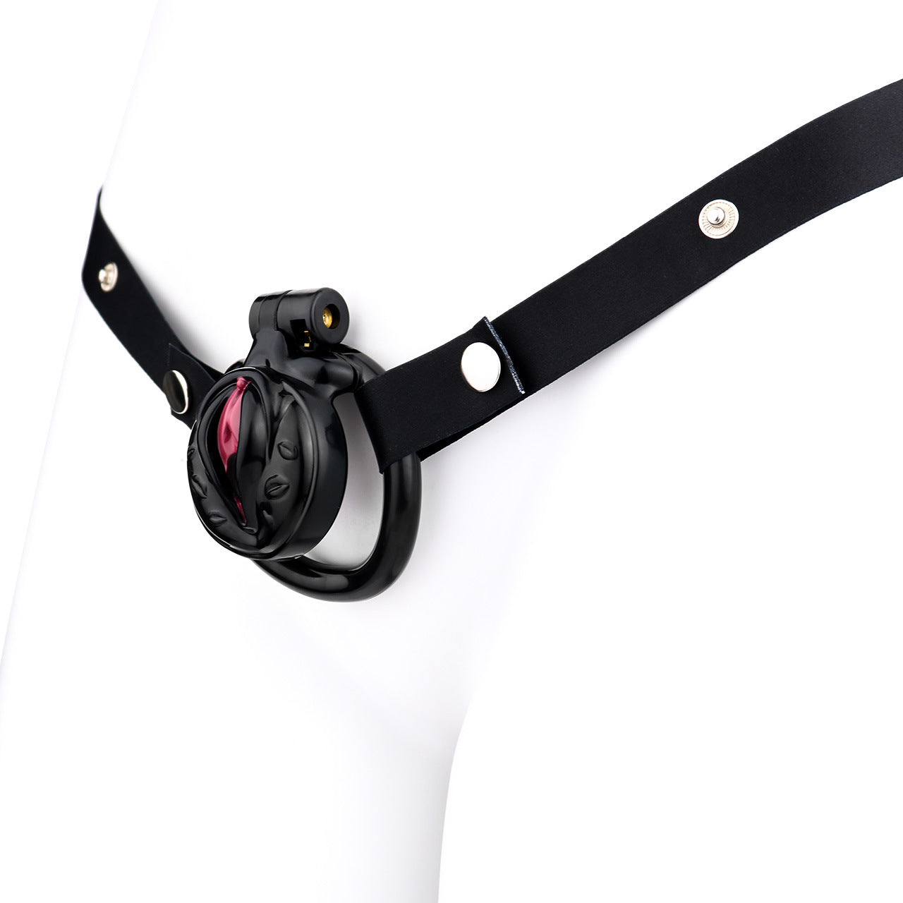 FRRK-3212Transvestite Pink Wearing Chastity Lock ABS Resin CB Bird Cage Miniature Lock Elastic Belt Set