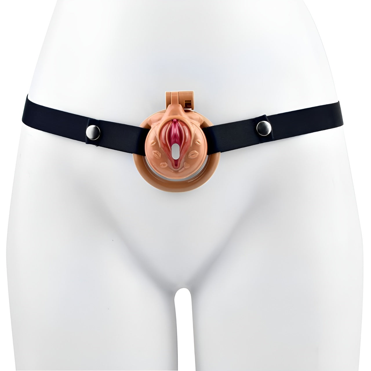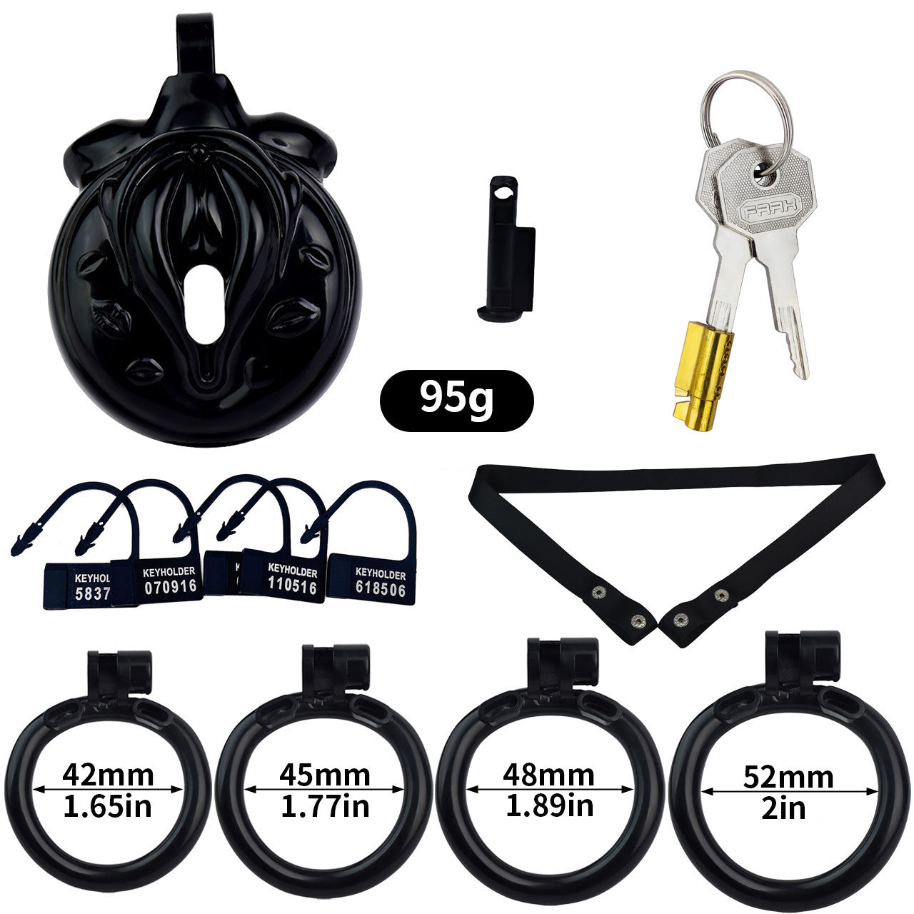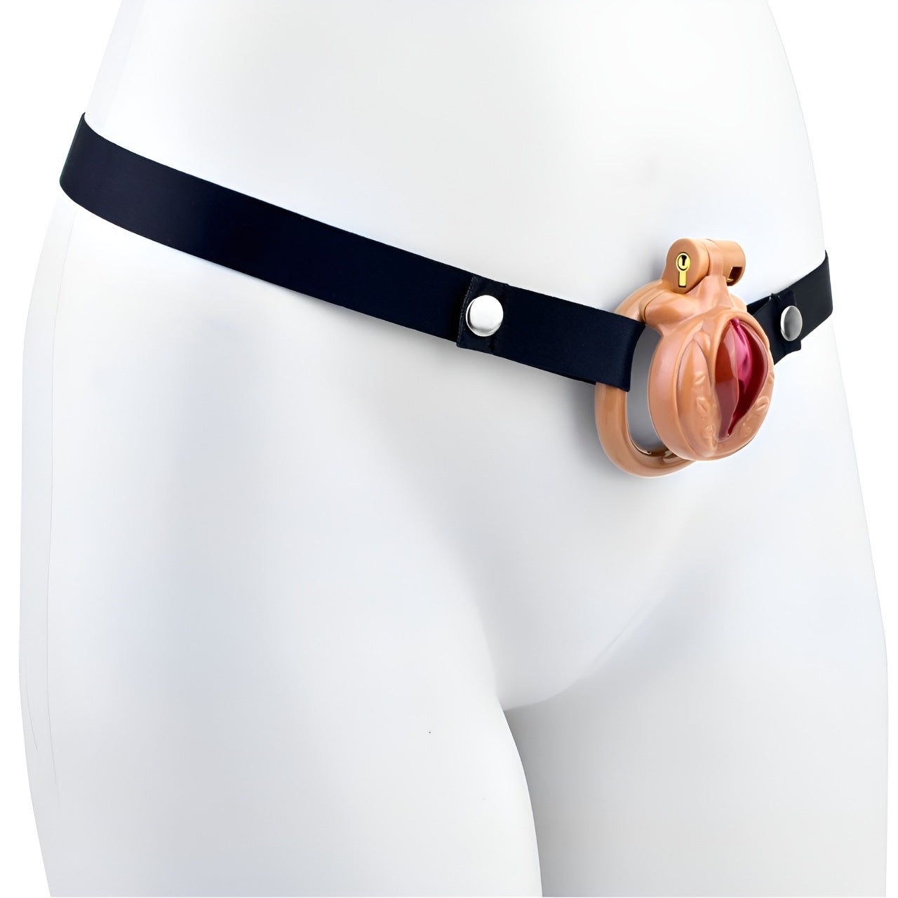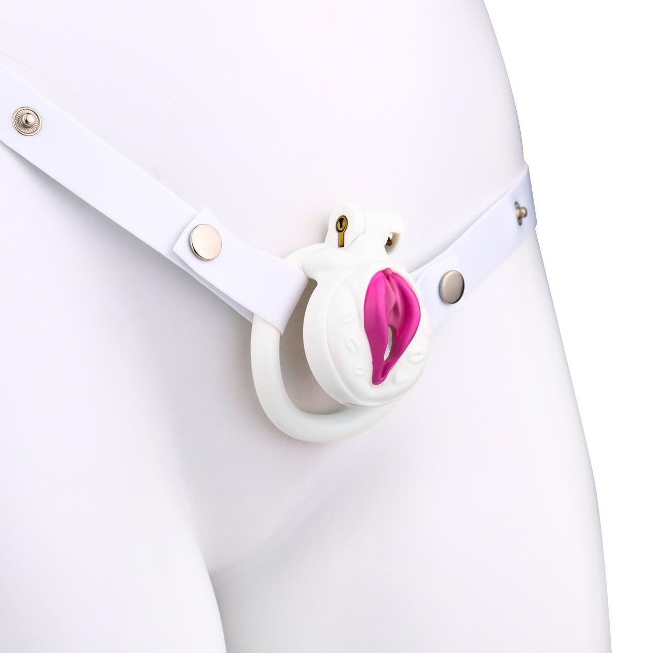 FRRK-3212Transvestite Pink Wearing Chastity Lock ABS Resin CB Bird Cage Miniature Lock Elastic Belt Set