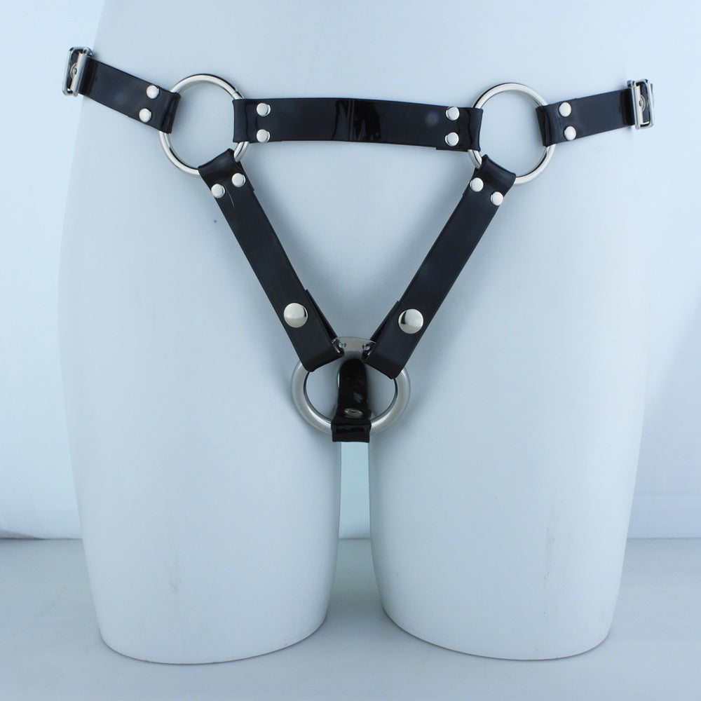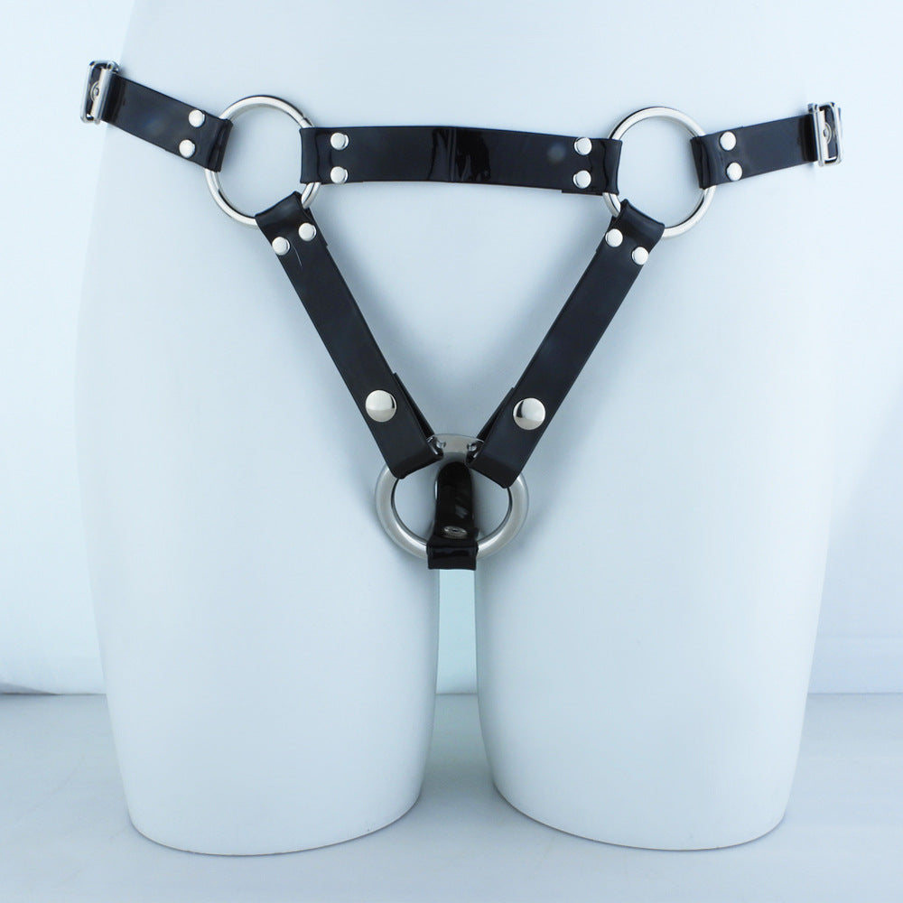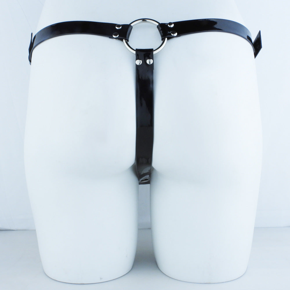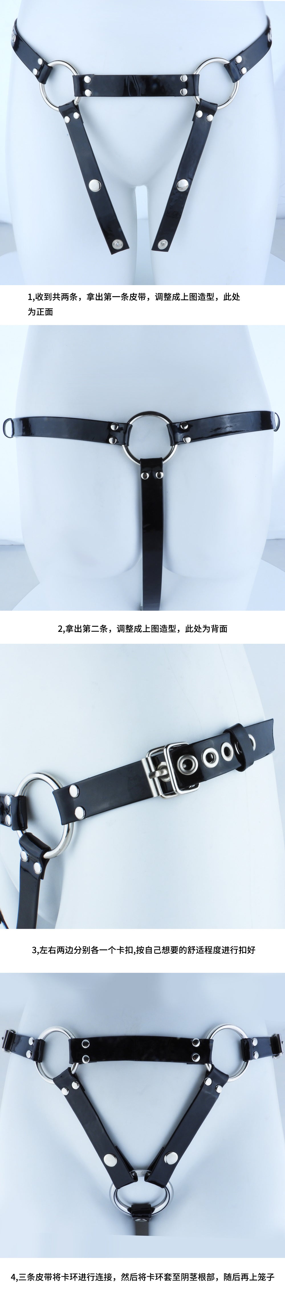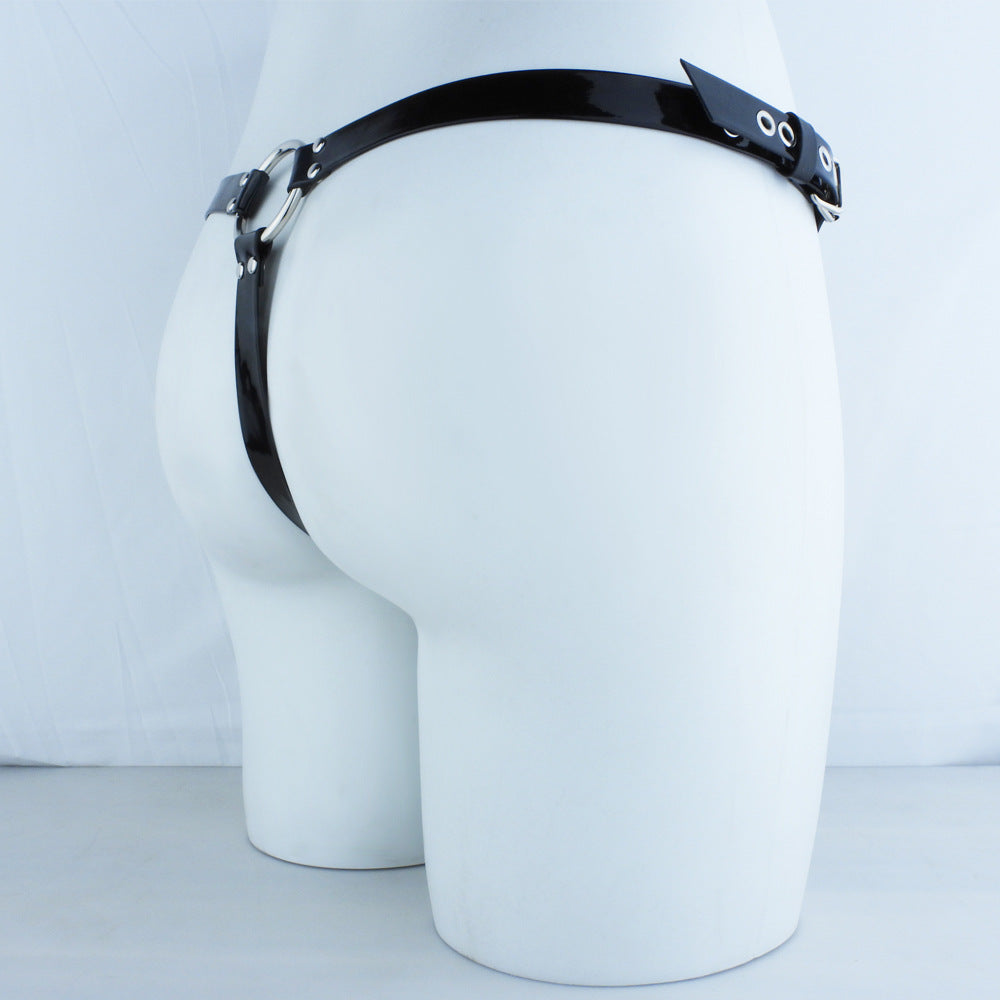 FRRK Black Shiny Leather Wearable Pants Chastity Lock Matching Leather Pants BDS Style M Code XL Adjustable Size Large Medium Small