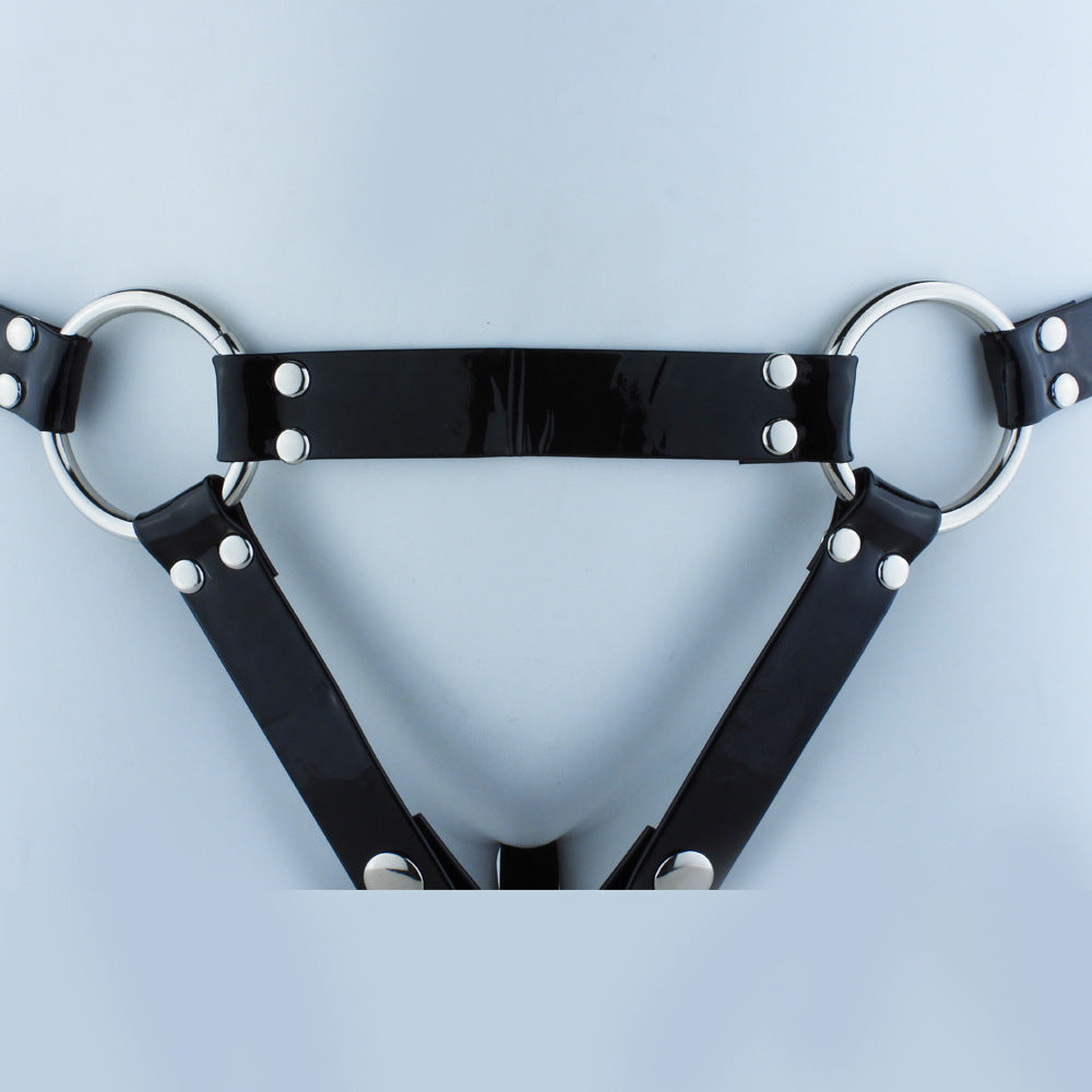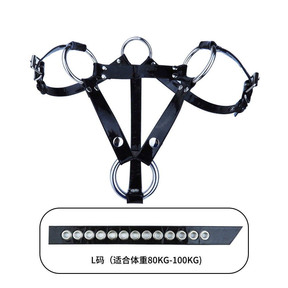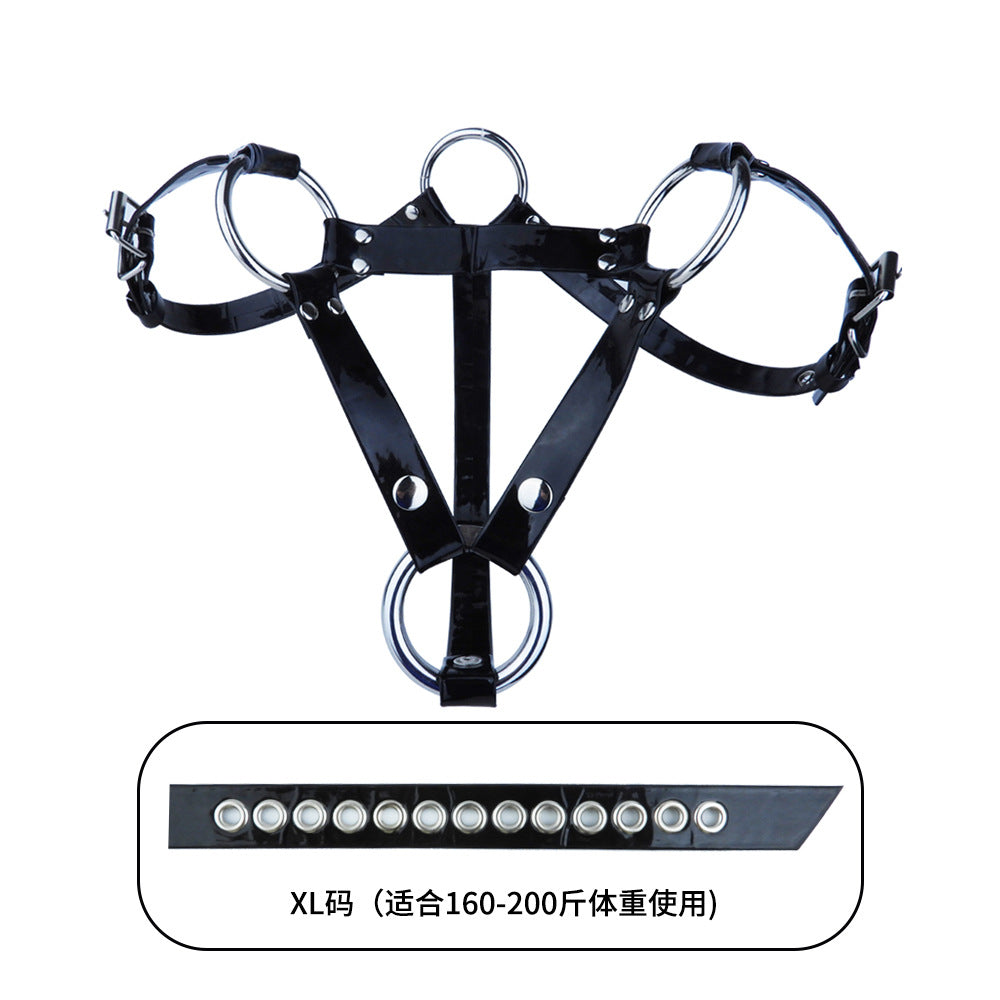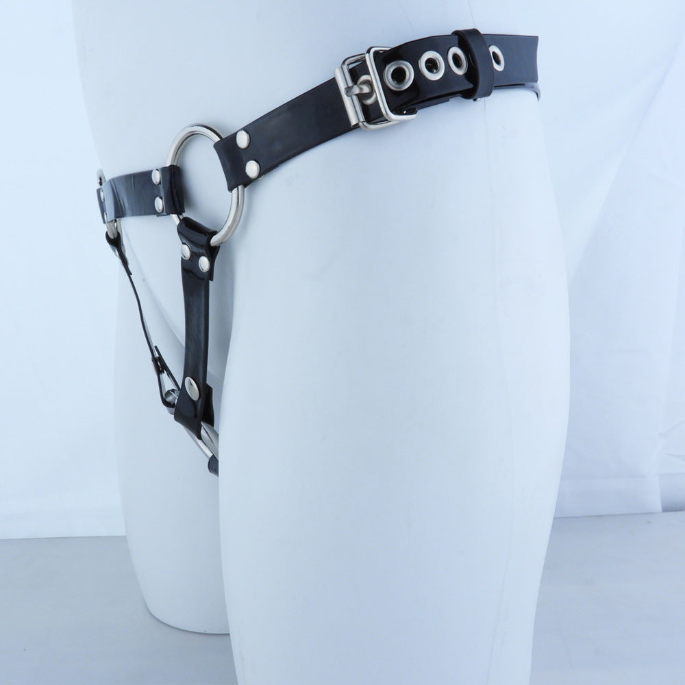 FRRK Black Shiny Leather Wearable Pants Chastity Lock Matching Leather Pants BDS Style M Code XL Adjustable Size Large Medium Small
