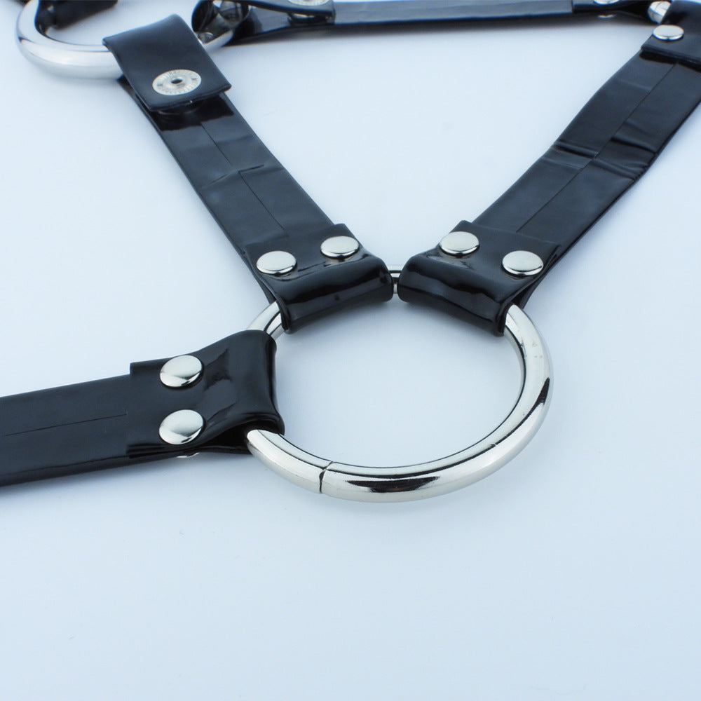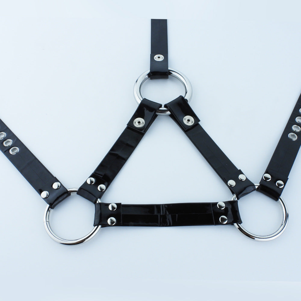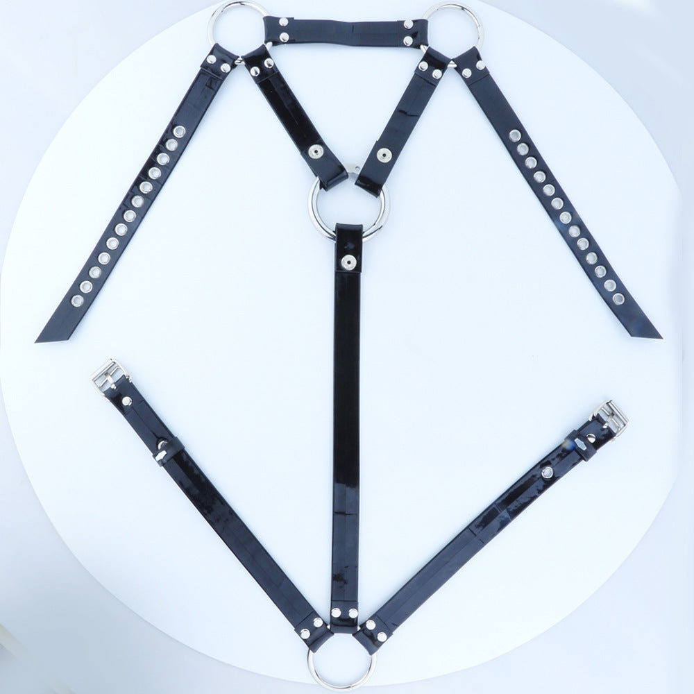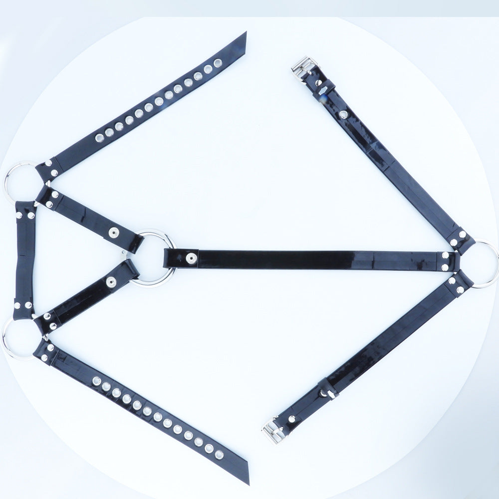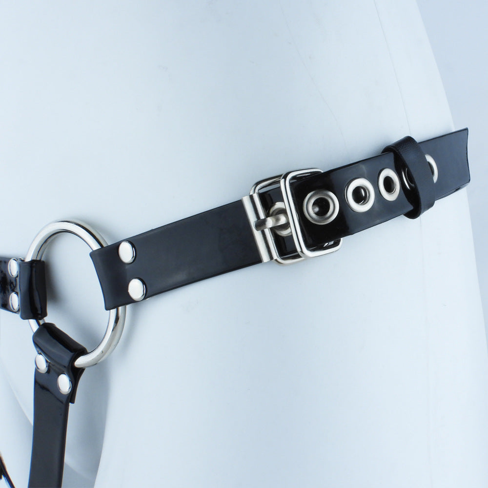 FRRK Black Shiny Leather Wearable Pants Chastity Lock Matching Leather Pants BDS Style M Code XL Adjustable Size Large Medium Small
