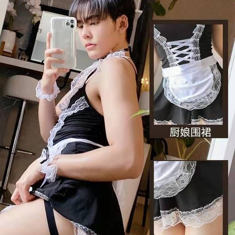 Real-shot sexy lingerie costume temptation: crossdresser maid outfit, plus-size role-playing apron set