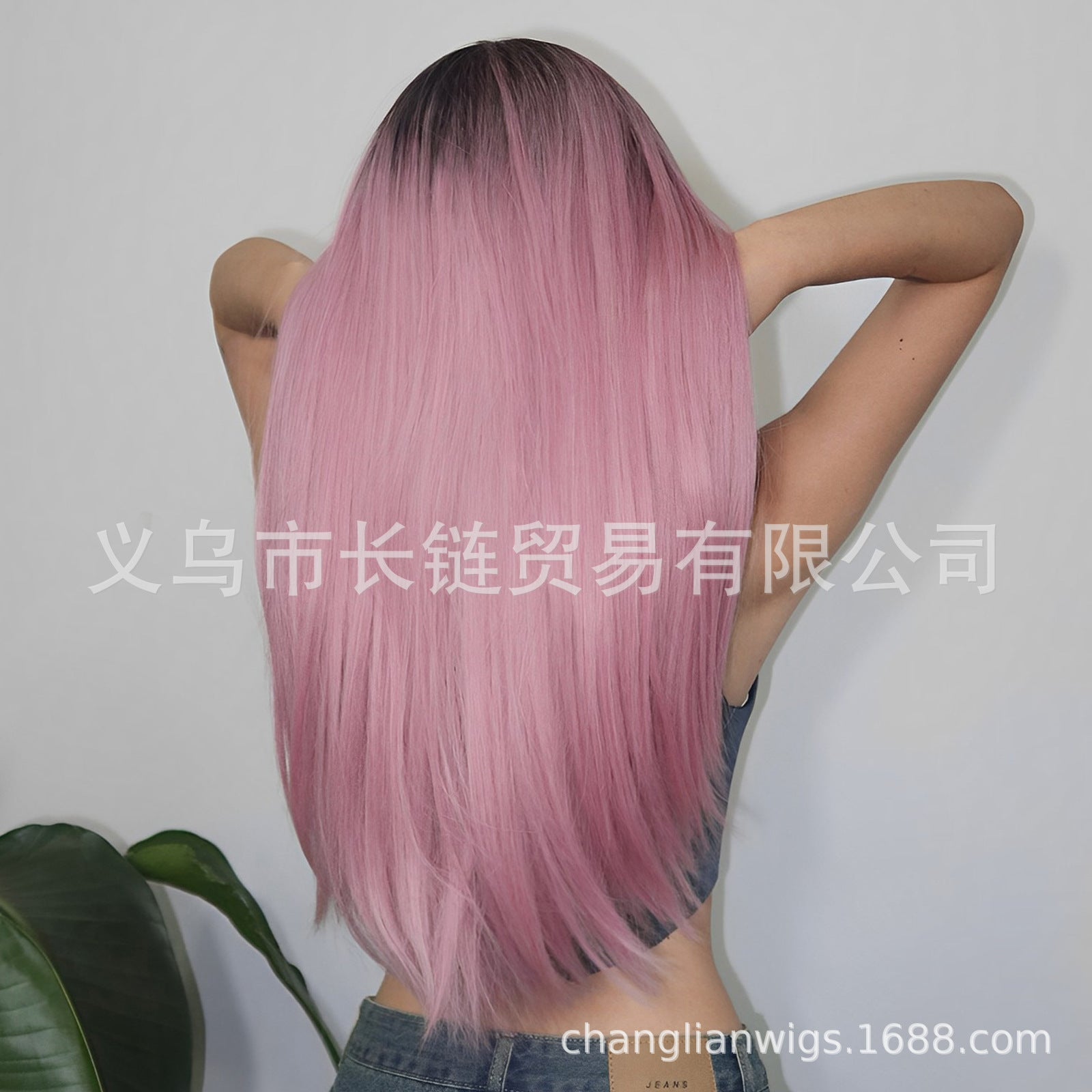 Wig for Women Hot Style Pink Dyed Black Long Straight Hair cos Suitable for Various Occasions Synthetic Wig